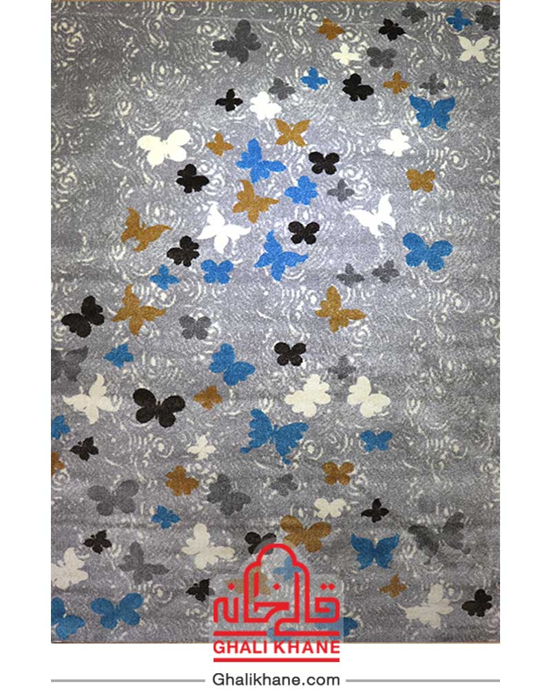 گلیم فرش ماشینی ساوین کد 4054 نقره ای