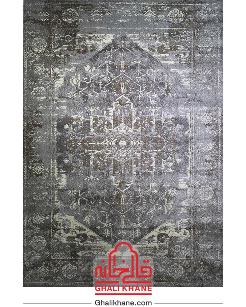 گلیم فرش ماشینی ساوین کد 4082 نقره ای