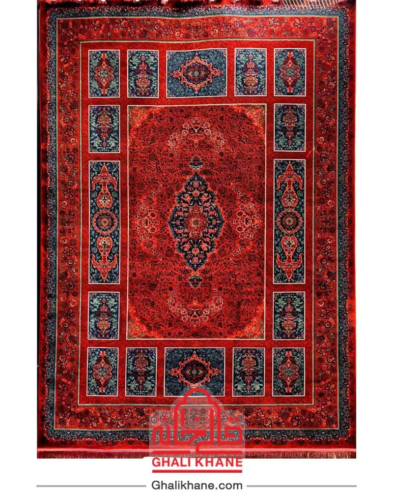فرش تهران کلکسیون آوانگارد 1200 شانه طرح کتیبه لاکی سبز