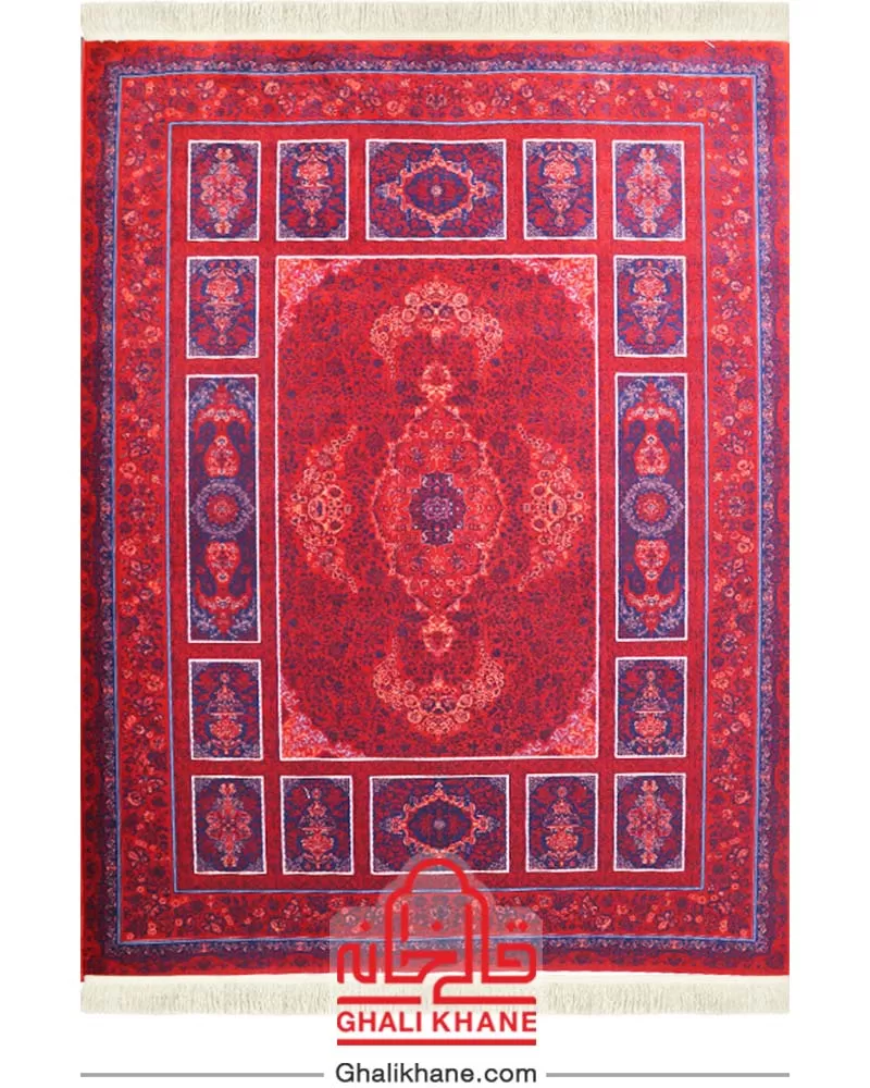 فرش تهران کلکسیون آوانگارد1200 شانه طرح کتیبه لاکی سرمه‌ای کاربنی
