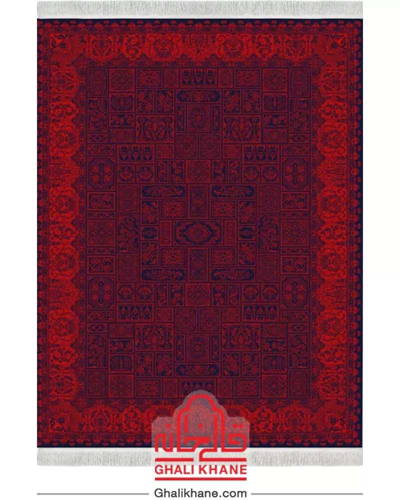 فرش تهران کلکسیون آوانگارد 1200 شانه طرح خشتی سرمه‌ای لاکی کاربنی